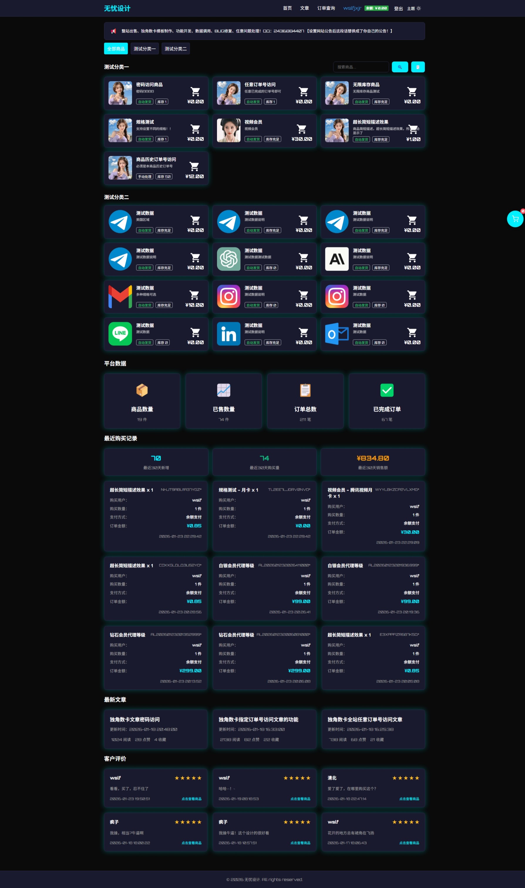 这个网站整体功能完整,用户体验良好,适合作为数字商品或虚拟商品的销售平台,支持自动发货和手动处理两种发货方式