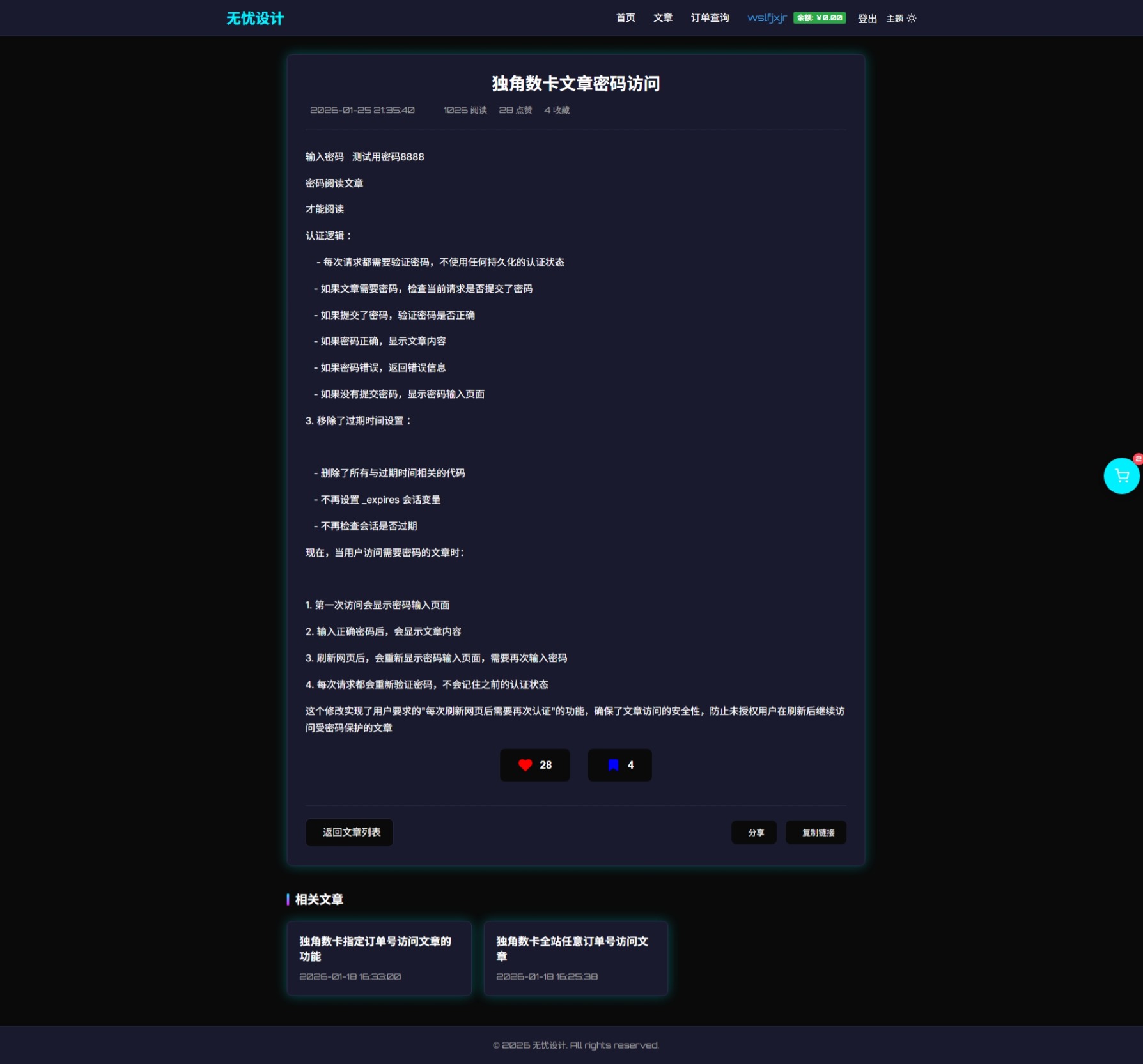 支持密码访问文章 全站任意商品订单号访问文章 特定商品订单号访问文章
