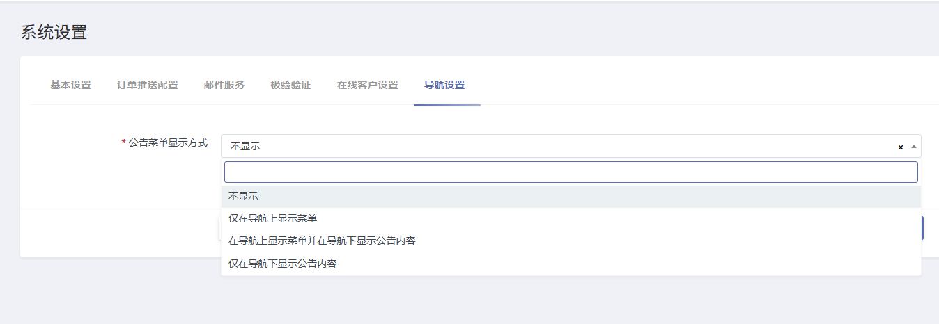 - 导航设置 :配置公告菜单的显示方式
