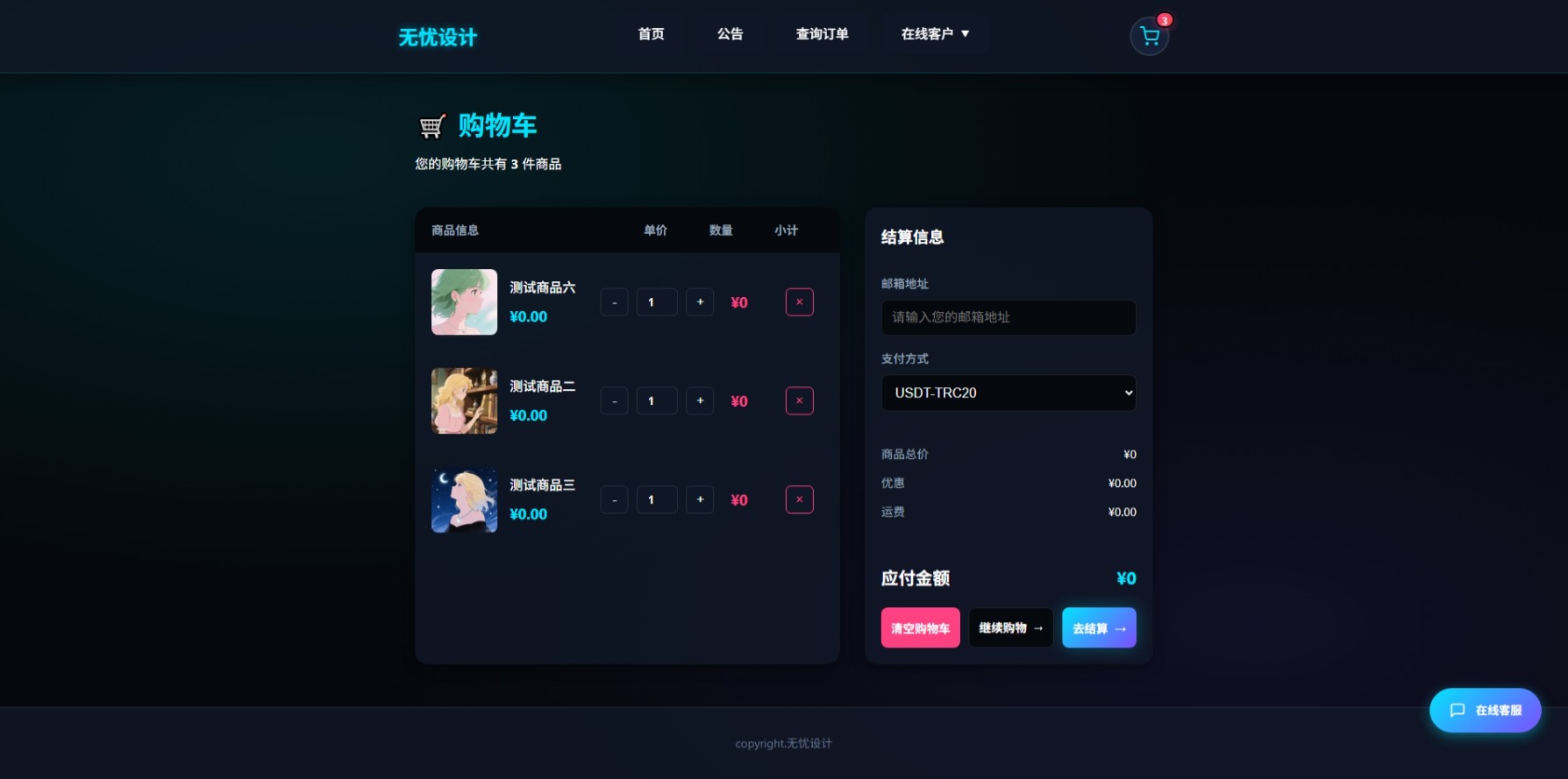 无忧设计卡片式带购物车