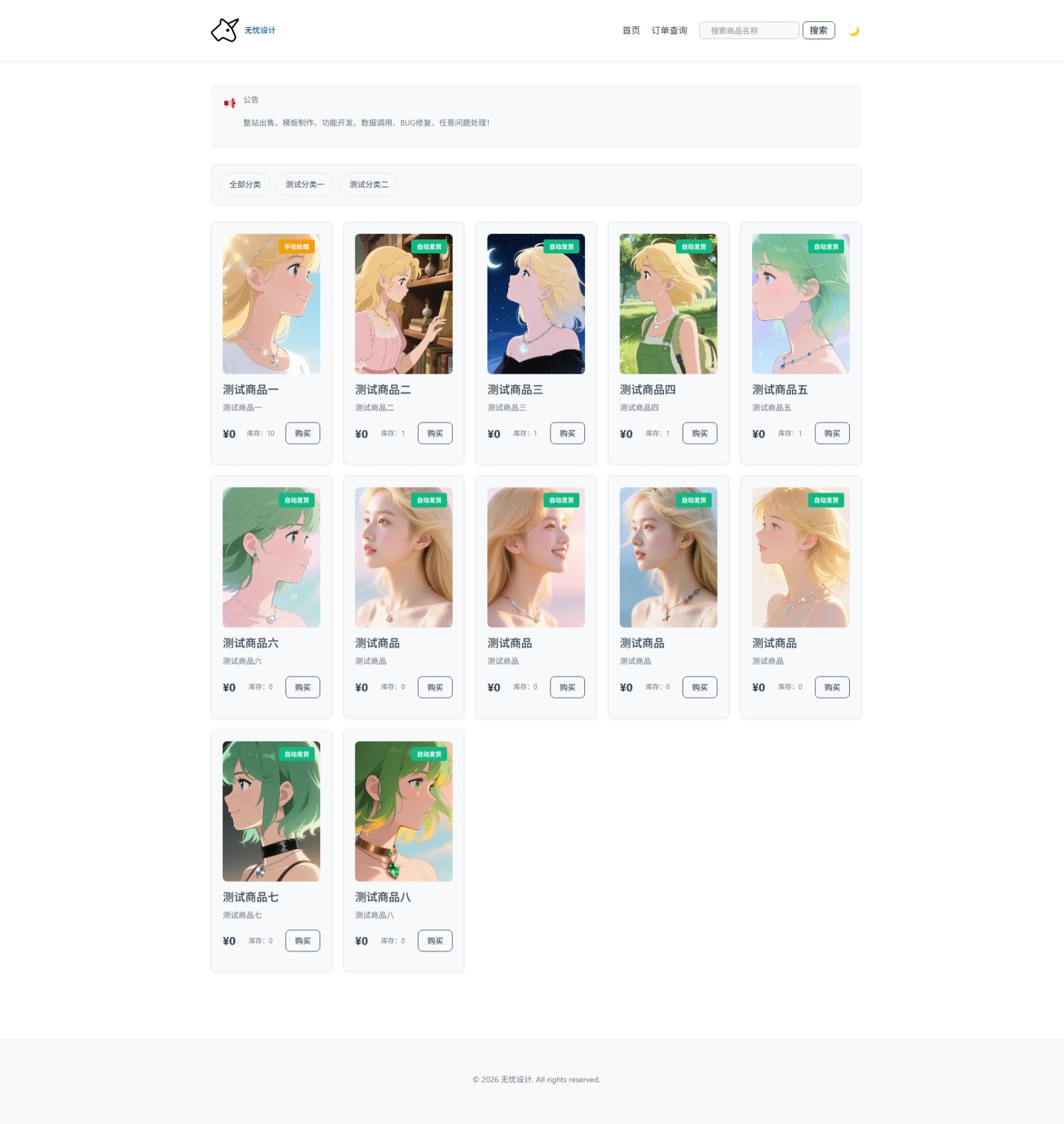 专业的数字商品销售网站搭建服务,支持自动发卡、订单自动处理、在线支付集成,帮助您快速构建独立的软件激活码、会员订阅、虚拟资源等数字产品商城。